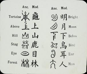| Keywords: Chinese Styles of Writing, China, ca. 1905-1914 (IMP-CSWC47-LS1-49).jpg en <br> Chinese Styles of Writing China ca 1905-1914 Black and white lantern slide illustrating both ancient and modern pre-1949 referred to as traditional Chinese characters The evolution of characters from initial resemblance to their signifiers is displayed This slide comes from a collection held by the Church of Scotland and generated by the medical missionary Charles Somerville who worked for the London Missionary Society in Hankou from 1904 to 1914 Photographer Unknown Subject personal name Calligraphy--China Filename IMP-CSWC47-LS1-49 tif Coverage date 1905/1914 Subject unesco Calligraphy; Asian languages; Handwriting Part of collection International Mission Photography Archive ca 1860-ca 1960 Part of subcollection Photographs from the Centre for the Study of World Christianity University of Edinburgh U K ca 1900-ca 1940s Repository name Centre for the Study of World Christianity Archival file Volume4/IMP-CSWC47-LS1-49 tif Repository address The University of Edinburgh School of Divinity New College Mound Place Edinburgh EH1 2LX United Kingdom Geographic subject country China Format aacr2 lantern slides 8 2 x 8 2cm Geographic subject continent Asia Rights Contact the repository for details Part of series Church of Scotland Slide and Visual Collection; Charles Somerville CSWC47-LS1 Repository email divinity-CSWC ed ac uk Date created 1905/1914 Publisher of the digital version University of Southern California Libraries Format aat lantern slides; photographs Access conditions http //www ed ac uk/schools-departments/divinity/research/centres/world-christianity/collections-resources File CSWC47/LS1/49 Contributor Photo Department Tientsin Hui Wen Academy Tientsin China Subject lcsh Calligraphy; Writing; Chinese language--Cursive writing 1905/1914 date created author http //digitallibrary usc edu/cdm/ref/collection/p15799coll123/id/78428 PD-old-70-1923 Magic lantern images Images from USC Digital Library uploaded by Fæ International Mission Photography Archive ca 1860-ca 1960 |