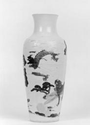 | Keywords: Chinese - Vase with Tiger and Dragon - Walters 491649.jpg By the late 1600s groupings of five or seven Chinese porcelain vessels with alternating shapes were often displayed over doors A complete set was called a garniture This piece with a cobalt blue underglaze is from the Kangxi K'ang-hsi period 1662-1722 and was made for export to foreign markets between 1680 1700 porcelain with underglaze blue and red and touches of green cm 42 4 accession number 49 1649 12316 William T Walters Baltimore date and mode of acquisition unknown Henry Walters city Baltimore Walters Art Museum Henry Walters Acquired by William T Walters reign mark of Kangxi K'ang-hsi 1661-1722 place of origin China Walters Art Museum license Chinese porcelain in the Walters Art Museum Media contributed by the Walters Art Museum needs category review Porcelains of the Qing Dynasty Chinese export porcelain in the Walters Art Museum |