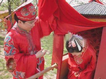 Keywords: Chinesebridegroom.JPG en Bride and groom at a traditional Chinese wedding ceremony Own Cecikierk Wedding ceremonies in China Red in China Litters vehicle