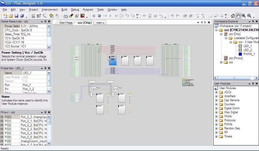 Keywords: Chipdesigner.jpg en screenshoot cypress psocdesigner in chip mode Own Joanvano64 2009-09-25 Microcontrollers CYpress C GUI