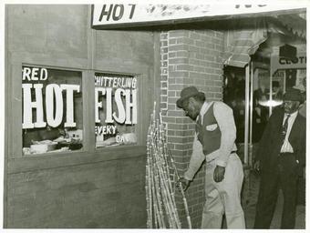 | Keywords: new york public library newyorkpubliclibrary dc:identifier=http://digitalgallery.nypl.org/nypldigital/id?1260052 dc:identifier=httpdigitalgallerynyplorgnypldigitalid1260052 xmlns:dc=http://purl.org/dc/elements/1.1/ xmlns:dc=httppurlorgdcelements11 dc:coverage=1939 clarksdale miss. miss african american men africanamericanmen cafes sugarcane mississippi depression era depressionera Digital ID: 1260052. Chitterling, fish and sugar cane on street in Negro Section, Clarksdale, Mississippi Delta; On a Saturday afternoon, November 1939.. Wolcott, Marion Post -- Photographer. Date depicted: November 1939 Notes: Original negative # : 52480-D. Source: Farm Security Administration Collection. / Mississippi. / Marion Post Wolcott. (more info) Repository: The New York Public Library. Schomburg Center for Research in Black Culture. Photographs and Prints Division. See more information about this image and others at NYPL Digital Gallery. Persistent URL: digitalgallery.nypl.org/nypldigital/id?1260052 Rights Info: No known copyright restrictions; may be subject to third party rights (for more information, click here) Digital ID: 1260052. Chitterling, fish and sugar cane on street in Negro Section, Clarksdale, Mississippi Delta; On a Saturday afternoon, November 1939.. Wolcott, Marion Post -- Photographer. Date depicted: November 1939 Notes: Original negative # : 52480-D. Source: Farm Security Administration Collection. / Mississippi. / Marion Post Wolcott. (more info) Repository: The New York Public Library. Schomburg Center for Research in Black Culture. Photographs and Prints Division. See more information about this image and others at NYPL Digital Gallery. Persistent URL: digitalgallery.nypl.org/nypldigital/id?1260052 Rights Info: No known copyright restrictions; may be subject to third party rights (for more information, click here) Digital ID: 1260052. Chitterling, fish and sugar cane on street in Negro Section, Clarksdale, Mississippi Delta; On a Saturday afternoon, November 1939.. Wolcott, Marion Post -- Photographer. Date depicted: November 1939