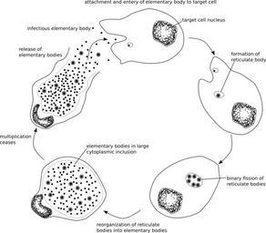Keywords: Chlamydae Life Cycle.svg en Basic diagram of the life cycle of the Chlamydiae own Huckfinne 2009-12-09 Bacteria diagrams Chlamydiae