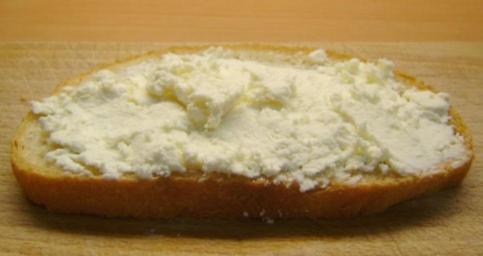 Keywords: Chleb z bryndza.jpg Bread spread with bryndza Photo by Kpalion 2005 Bryndza Canapés Bread with cheese