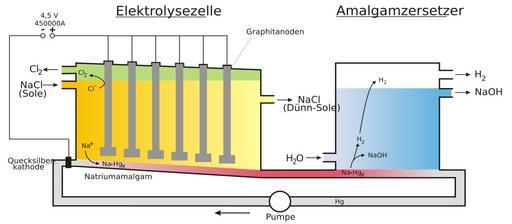Keywords: Chloralkali.svg en Mercury cell of the chloralkali process de Amalgamverfahren der Chloralkali-Elektrolyse wikipedia MarkusZik 2009-06-21 Chloralkali process SVG chemical engineering