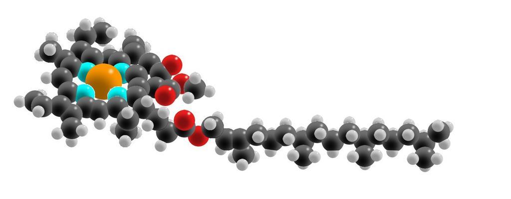 | Keywords: Chlorophyll spacefilling model.jpg  en A spacefilling model of a chlorophyll-a molecule Black balls are carbon atoms white is hydrogen red is oxygen turquoise is nitrogen and orange is magnesium own Diplodocus 2010-02-10 Public domain Chlorophyll  |