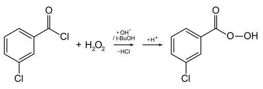 Keywords: Chlorperoxybenzoic acid synthesis.svg reaction scheme of m-Chlorperoxybenzoic acid synthesis Reaktionsschema zur Darstellung von m-Chlorperoxybenzoesäure Own 2008-08-01 Ilgom talk Chemical syntheses