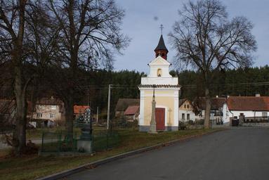 Keywords: Chlum chapel 02.JPG en Chapel in Chlum Strakonice District cs Horní část návsi v Chlumu s kaplí Own feťour 2009-11-27 Chlum Strakonice District