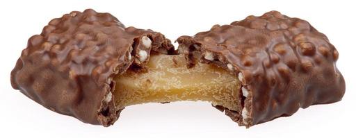 Keywords: chocolate candy bar caramel nuts sweet brown snack tasty unwrapped broken eat food
