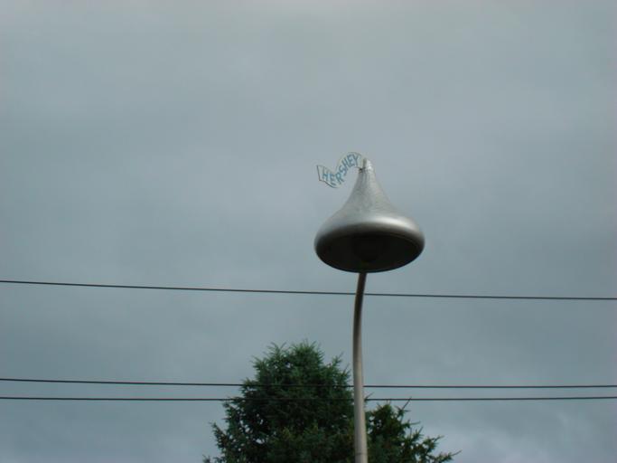 | Keywords: Chocolate Kiss streetlight-wrapped, Hershey PA.jpg Chocolate Kiss streetlight on Chocolate Avenue wrapped and with the Hershey name tag Some of the Kiss streetlights are brown unwrapped and some are silver wrapped The wrapped ones have the nametag Hershey Pennsylvania USA Rlevse 2009-06-21 Rlevse Trademark <b style color 060; ><i>R</i>levse</b> ¢ <span style color 990; >Talk</span> ¢ </span> 2009-06-27 Photographs by Rlevse Hershey Pennsylvania Street lights in Pennsylvania Hershey's Kisses |