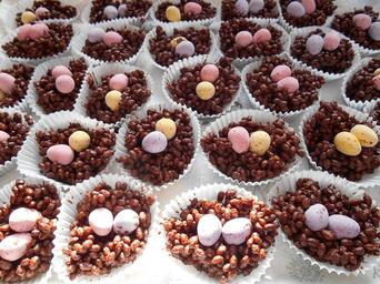 Keywords: chocolate nests easter eggs cake spring food holiday sweet candy traditional dessert seasonal homemade springtime