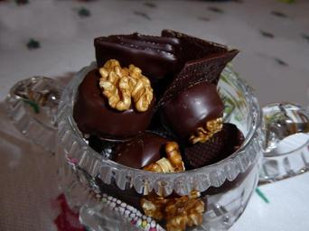 Keywords: chocolates walnut pralines chocolate sweet benefit from candy glass bowl deco calories delicious delicacy