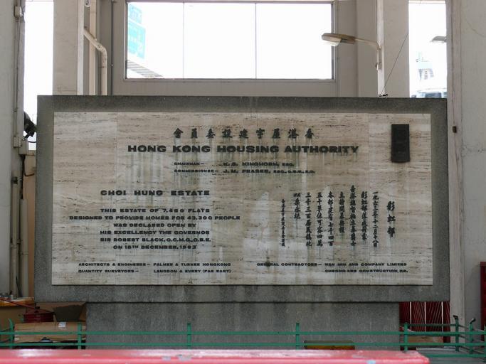 Keywords: ChoiHungEstateSignboardOfOpeningCeremony.jpg A Signboard of the opening ceremony of Choi Hung Estate Hong Kong own 2007-05-11 ThomasWu726 Hong Kong Housing Authority 1963 foundation stones in Hong Kong Choi Hung Estate