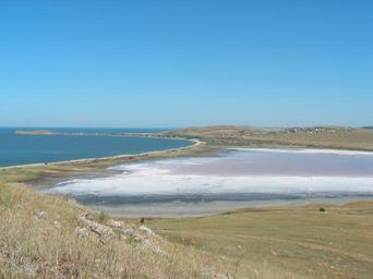 Keywords: Chokrak.jpg ru Озе о Чок ак вид на севе ную часть озе а и пе есыпь отделяющюю его от Азовского мо я Own Kurgus 2008-07-12 45 28 25 88 N 36 17 48 06 E region UA Chokrak Kurortnoye Lenine Raion Lagoons