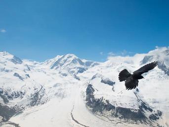Keywords: chough jackdaw bergdohle bird switzerland valais mountains monte rosa snow gornergrat border glacier zermatt alpine icy