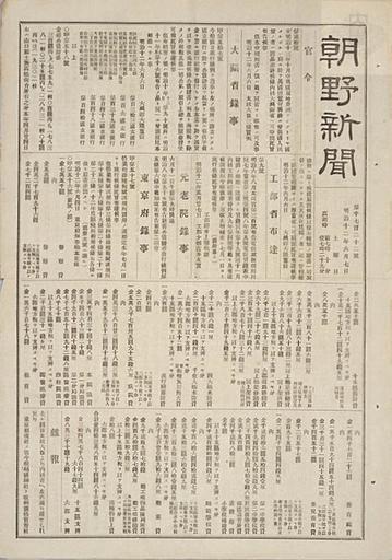 | Keywords: Chōya Journal 1879.jpg en Chōya Journal say Official and Unofficial News was a Japanese political crit journal published from 1874 till 1893 Cagtegory Newspapers from Japan ja 野新聞は 明治7年から1893年まで発行された政論新聞 http //www wul waseda ac jp/kosho/sai002/sai2_63a/sai2_63a jpg author 1879 6 7 Similar image is seen on a other website PD-Japan-oldphoto Choya Shimbun Newspaper front pages 1879 newspapers 1879 in Japan | ||||