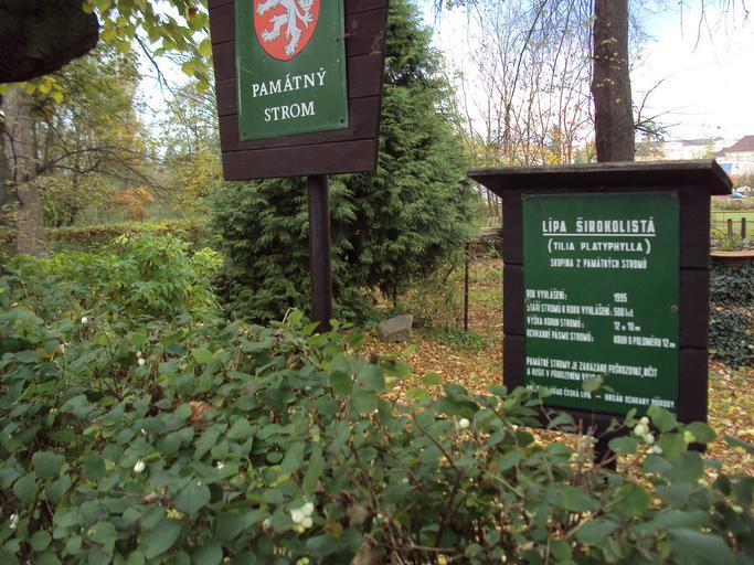 Keywords: Chráněné lípy 1.jpg cs Chráněné lípy v České Lípě u kostela Maří Magdaleny ve středu města own Zákupák 2010-10-21 Memorable tree signs in the Czech Republic Lípy u českolipského kostela
