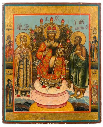 | Keywords: Christ enthroned with Mother of God and John the Forerunner.jpg en Christ enthroned with Mother of God and John the Forerunner Icon Tempera on woodpanel Russia early 19th century 35 5x29 cm ru ИКО А СПАС ВСЕДЕРЖИТЕЛЬ А ТРО Е С ПРЕДСТОЯЩИ И БОГО АТЕРЬЮ И ИОА О ПРЕДТЕЧЕЙ Россия ачало 19 в Темпе а де ево Разме ы 35 5х29 см Early 19th century https //www bukowskis com/en/auctions/F171/228-ikon Bukowskis author other versions PD-Art Uploaded with UploadWizard Icons of Christ Pantocrator enthroned |