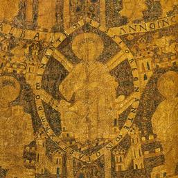 | Keywords: Christ on the coronation pall-2.jpg author 1031 textile embroidery Institution Hungarian National Museum Budapest object history credit line accession number own scanned by Szilas from A magyar Szent Korona by Tóth Endre Szelényi Károly Kossuth 2000 Budapest PD-old-100 Coronation pall of Hungary |