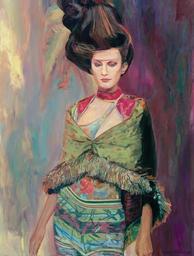 | Keywords: hair-do hairdo haute-couture hautecouture christian-lacroix christianlacroix poncho-de-luxe ponchodeluxe oilpainting on.canvas oncanvas 1998 people costume This case needs a description, meaning that no words can express the inventive, daring or dashing and ultimately sexy appearance of a top model on the catwalk. When a towering hairdo matches a luxurious poncho the eye travels to the face and its delicate make-up and to the front of the model, who has been decorated between the eyebrows. Any woman would feel like a Goddess walking the Earth ! This case needs a description, meaning that no words can express the inventive, daring or dashing and ultimately sexy appearance of a top model on the catwalk. When a towering hairdo matches a luxurious poncho the eye travels to the face and its delicate make-up and to the front of the model, who has been decorated between the eyebrows. Any woman would feel like a Goddess walking the Earth ! |