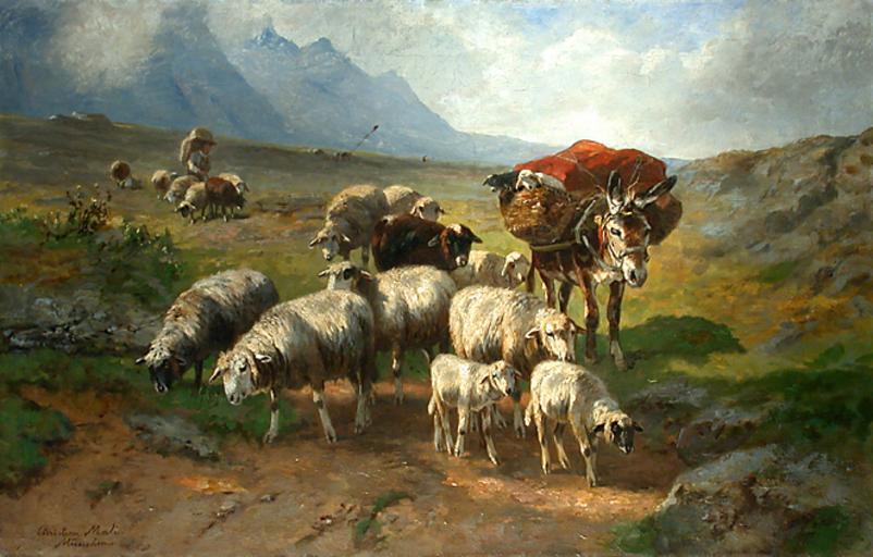 Keywords: Christian Mali Schafherde mit Esel.jpg Christian Mali Schafherde mit Esel und Schäfer auf einer Hochebene Oil on canvas Dimensions 56 x 86 5 cm Creator Christian Mali PD-old-100 Source http //www hampel-auctions com/ Paintings of donkeys Pack donkeys Paintings of sheep Oil paintings of animals Christian Mali Images from Hampel Auctions Artworks missing infobox template |