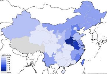 | Keywords: Christianity in China 2010s.png Distribution of Christians in China in the 2010s by province according to CGSS 2009 and CFPS 2012 China General Social Survey 2009 results reported in https //baylor-ir tdl org/baylor-ir/bitstream/handle/2104/9326/WANG-THESIS-2015 pdf sequence 1 Xiuhua Wang 2015 p 15 ; Chinese Family Panel Studies 2012 for Shanghai Guangdong Henan Liaoning and Gansu report http //iwr cass cn/zjwh/201403/W020140303370398758556 pdf 当代中国宗教状况报告 基于CFPS 2012 调查数据 p 013 2015-09-14 Aethelwolf Emsworth Allowed to copy and distribute Religion maps of China Christianity in China |