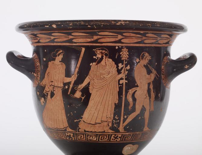 MAKE A MEME View Large Image Christie Painter - Red-Figure Bell Krater - Walters 4874 - Detail A.jpg The wine-god Dionysus appears often on vases of this shape called a bell krater which held wine for drinking parties He is usually shown as a bearded and majestic god ...