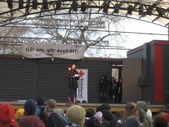 | Keywords: Christina Höj Larsen from Left Party at demonstration against Swedish migration policy in Stockholm.JPG sv Christina Höj Larsen från Vänsterpartiet talar På demonstration mot REVA och Sveriges migrationspolitik i allmänhet i Kungsträdgården i Stockholm 10 mars 2013 arrangerad av Rädda Barnens ungdomsförbund Röda Korsets ungdomsförbund och Ungdom Mot Rasism en Speech by Christina Höj Larsen from the Left Party Demonstration against REVA and Sweden's migration policy in Kungsträdgården in Stockholm organized by Save the Children's youth association the Red Cross' youth association and Ungdom Mot Rasism Youth Against Racism 2013-03-09 16 55 07 own Calandrella 59 331132 18 071222 cc-zero Demonstration against REVA and deportations in Stockholm 10 March 2013 Christina Höj Larsen Speeches in Sweden |