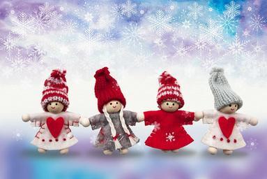Keywords: christmas angel winter hand labor knitted heart snowfall snow christmas card postcard greeting card cheerful serene red white grey watercolor blue turquoise violet dance ringelreihen photo graphics