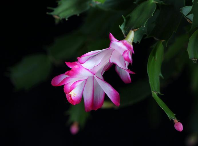 Keywords: christmas cactus cacti succulent flora pink white flower blossom bloom