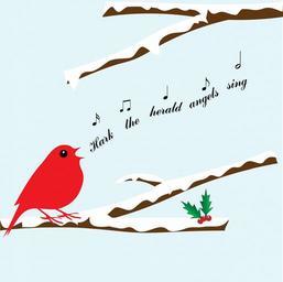 Keywords: christmas christmas card bird branch tree snow singing christmas carol holly berries cute art illustration card scrapbooking blue xmas