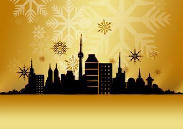 Keywords: christmas card greeting card gold golden skyline skyscraper silhouette snowflakes advent christmas star christmas greeting map