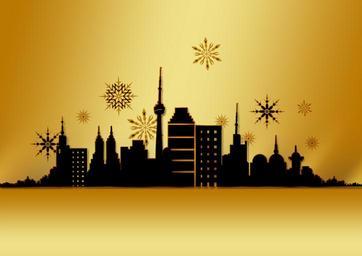 Keywords: christmas card greeting card gold golden skyline skyscraper silhouette snowflakes advent christmas star christmas greeting map