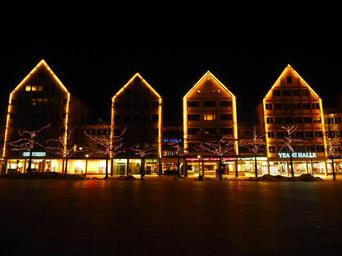 Keywords: christmas christmas lights lighting lamps christmas decoration cathedral square ulm christmas decorations night dark row of houses load line shopping street
