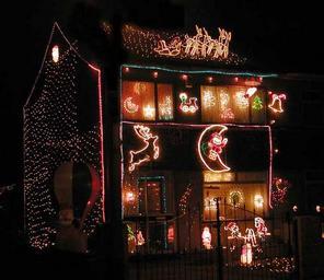| Keywords: Christmas.house.arp.750pix.jpg A house decorated for Christmas in Yate near Bristol England <br> Picture taken by Adrian Pingstone in December 2003 and placed in the public domain Arpingstone Night in England Christmas in England Christmas 2003 in England Yate 2003 in Bristol |
