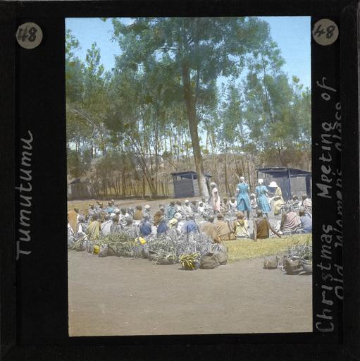Keywords: Christmas Meeting of an Old Woman's Class, Tumutumu, Kenya, ca.1905-ca.1940 (imp-cswc-GB-237-CSWC47-LS7-048).jpg en <br> Christmas Meeting of an Old Woman's Class Tumutumu Kenya ca 1905-ca 1940 Photograph of a Christmas meeting of an old woman's class at the mission station of Tumutumu A group of women are gathered outdoors sitting in a circle 4 women are standing inside the circle and there are bags possibly containing food sitting on the ground ; This belongs to a series of Church of Scotland Foreign Missions Committee lantern slides relating to the Kikuyu Mission in Kenya which was set up by Church of Scotland missionaries Hospitals were established by Scottish missionaries in Kikuyu in 1908 in Tumutumu in 1909 and in Chogoria in 1922 The missionaries also introduced the Presbyterian Church to the area The Kikuyu are Kenyaas most populous ethnic group Photographer Unknown Filename imp-cswc-GB-237-CSWC47-LS7-048 tif Coverage date 1905/1940 Part of collection International Mission Photography Archive ca 1860-ca 1960 Type images Part of subcollection Photographs from the Centre for the Study of World Christianity University of Edinburgh U K ca 1900-ca 1940s Repository name Centre for the Study of World Christianity Archival file impaunpub_Volume7/1654 url Repository address The University of Edinburgh School of Divinity New College Mound Place Edinburgh EH1 2LX United Kingdom Geographic subject country Kenya Format aacr2 1 lantern slide 8 x 8 cm Geographic subject continent Africa Rights Contact the repository for details Part of series Kenya Mission LS7 Repository email divinity-CSWC ed ac uk Subject lcsh Keyword Older women; Christmas Date created 1905/1940 Publisher of the digital version University of Southern California Libraries Subject aat genre group portraits Format aat lantern slides Legacy record ID impa-m68761 Access conditions http //www ed ac uk/schools-departments/divinity/research/centres/world-christianity/collections-resources File GB 237 CSWC47/LS7/48 1905/1940 author http //digitallibrary usc edu/cdm/ref/collection/p15799coll123/id/64774 PD-old-70-1923 Magic lantern images Images from USC Digital Library uploaded by Fæ International Mission Photography Archive ca 1860-ca 1960 |