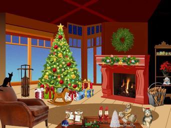 Keywords: christmas tree fir sky winter snow field chalet fireplace home crown cabinet windows sledge poinsettia snow balls black cat dog singers father christmas garland cold white