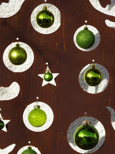 Keywords: christmas tree metal glaskugeln christmas weihnachtsbaumschmuck rusty brown green