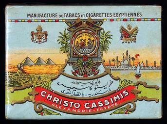 Keywords: Christo Cassimis blue cigarettes box, front.JPG Very old packaging of a product that is not produced and not sold any more own 2014-04-13 10 32 12 Alf van Beem CC-Zero Trademarked Christo Cassimis cigarettes