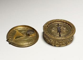 | Keywords: Christoph Schissler - Portable Drum Watch - Walters 5870 - View A.jpg The ealiest watches were small portable versions of drum-shaped table clocks This one has a sundial which was far more accurate and could be used to reset the clock The 24-hour dial is marked in Roman numerals on the outer band and in Arabic numerals on the inner one The animals leaping through the foliage design were cast in relief and then chased marking this watch as an object of luxury between 1550 1570 Renaissance gilt on brass case gilt and traces of red pigment on brass dial iron and brass movement cm 2 4 8 accession number 58 70 3943 Henry Walters Baltimore date and mode of acquisition unknown Walters Art Museum Henry Walters Acquired by Henry Walters Signature C S place of origin Augsburg Germany Walters Art Museum license Renaissance applied arts in the Walters Art Museum Christoph Schissler 16th-century watches Portable sundials |