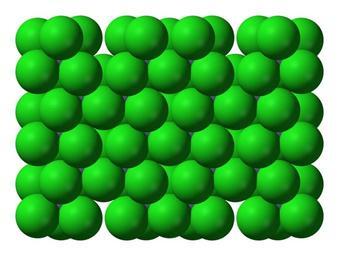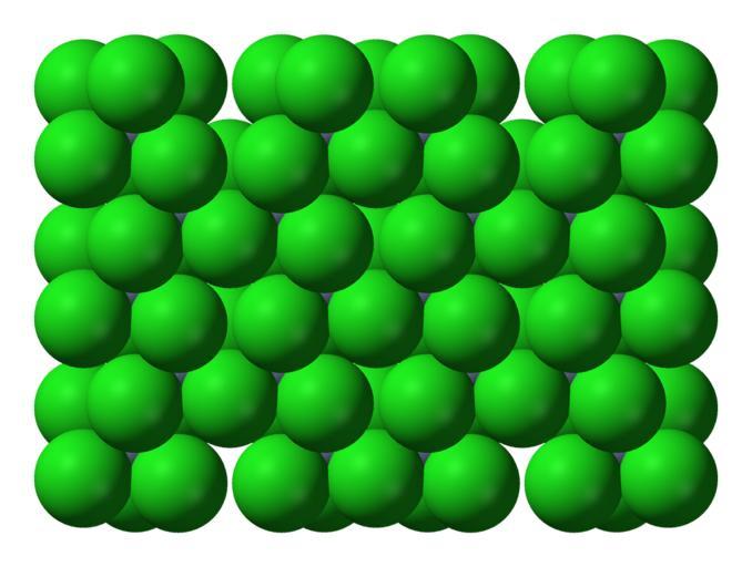 | Keywords: Chromium(III)-chloride-sheet-from-monoclinic-xtal-3D-SF.png Space-filling model of part of a CrCl<sub>3</sub> sheet that could extend to infinity in two dimensions as found in the crystal structure of chromium III chloride CrCl<sub>3</sub> X-ray crystallographic data from http //dx doi org/10 1063/1 1725428 J Chem Phys 1964 40 1958-1967 Model constructed in http //www crystalmaker com/ CrystalMaker 8 1 Image generated in http //accelrys com/products/discovery-studio/visualization/discovery-studio-visualizer html Accelrys DS Visualizer Own 2009-02-21 Ben Mills Benjah-bmm27 Images by Ben Mills Space-filling models Chromium III chloride Crystal structures of chlorides |