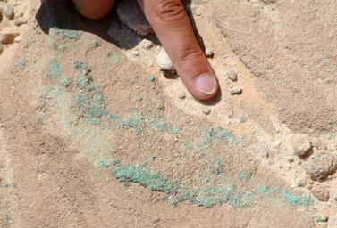 Keywords: Chrysocolla Timna 070613.jpg en Copper ore chrysocolla in Cambrian sandstone in the Timna Valley southern Israel 2013-07-06 14 17 58 own Wilson44691 cc-zero Uploaded with UploadWizard Chrysocolla Copper ores