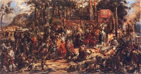 | Keywords: Chrzest Litwy 1387 Matejko.JPG Artwork en Christianization of Lithuania A D 1387 pl Chrzest Litwy R P 1387 oil canvas cm 60 115 5 Warsaw Institution Warsaw Royal Castle en Cycle of paintings History of civilisation in Poland Ewa Suchodolska Marek Wrede 1998 Jana Matejki Dzieje cywilizacji w Polsce Zamek Królewski w Warszawie ISBN 83-7022-093-2 1889 Creator Jan Matejko PD-Art Other versions PD-old-100 Kresy in Polish culture Paintings by Jan Matejko in the Royal Castle in Warsaw 1387 Christian mission in art Poland in history paintings 19th-century oil on canvas paintings 1889 paintings People with flags in art |