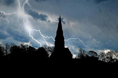 Keywords: church architecture skyline trees tree storm lightning rain weather sky landscape background wind cloud cloudy shadow