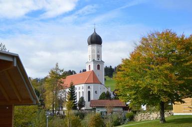 Keywords: church autumn blue sky onion dome allgäu rettenberg dome