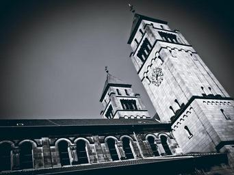 Keywords: church bell tower historically building steeple house of worship bell bell towers church steeples black white düsseldorf