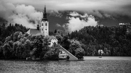 Keywords: church building black and white clouds building church scene christian religious historic