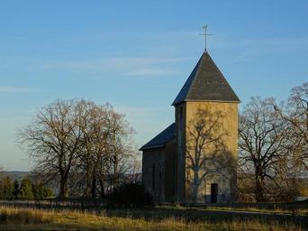 Keywords: church building brick historically cross christian architecture facade wall stone old tree sky blue silent window door goal landscape vegetation autumn winter germany
