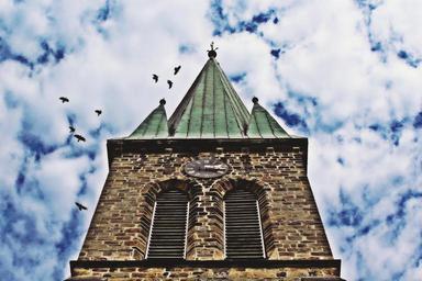 Keywords: church clouds sky birds mood steeple nature blue religion atmosphere dramatic roof hdr drama weather atmospheric cloud face