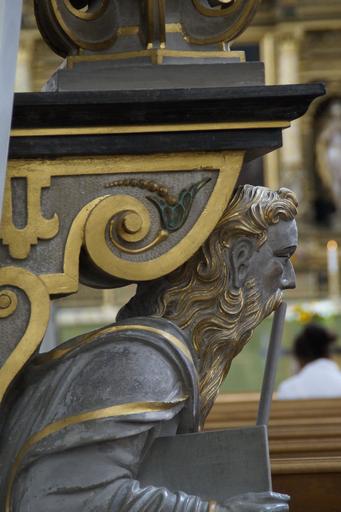 Keywords: church detail perspective religion christian building architecture baroque art christianity gilded faith bear man last shoulder bent roof rack sculpture carved