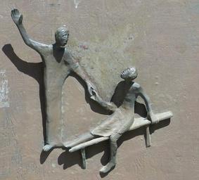 Keywords: church door portal metal input christianity faith relief bible christ jesus healing heal miracle christian stretcher ill